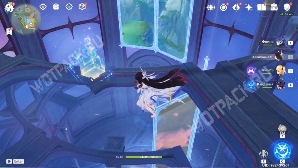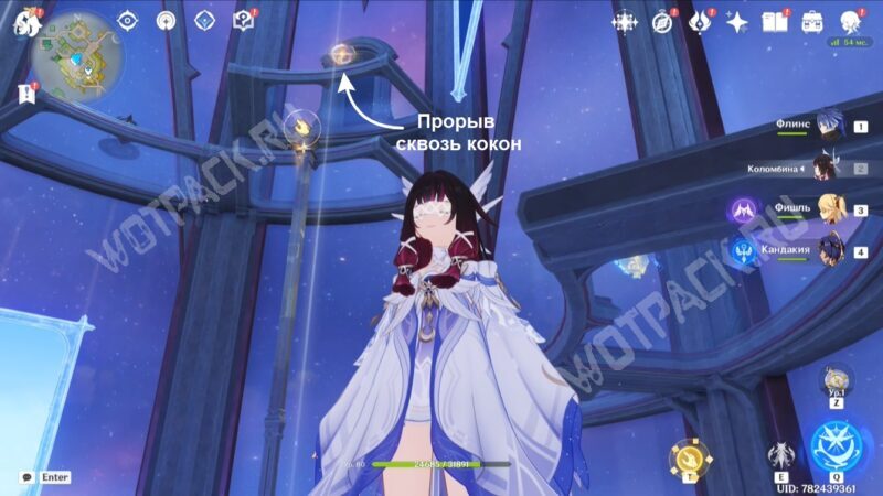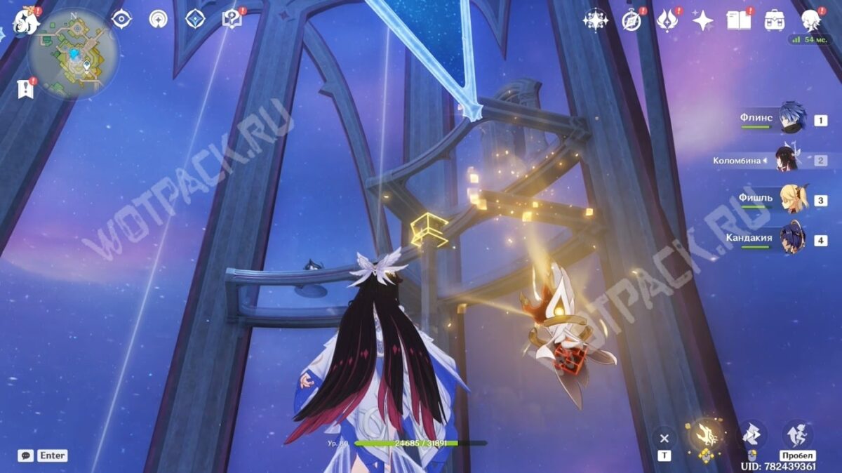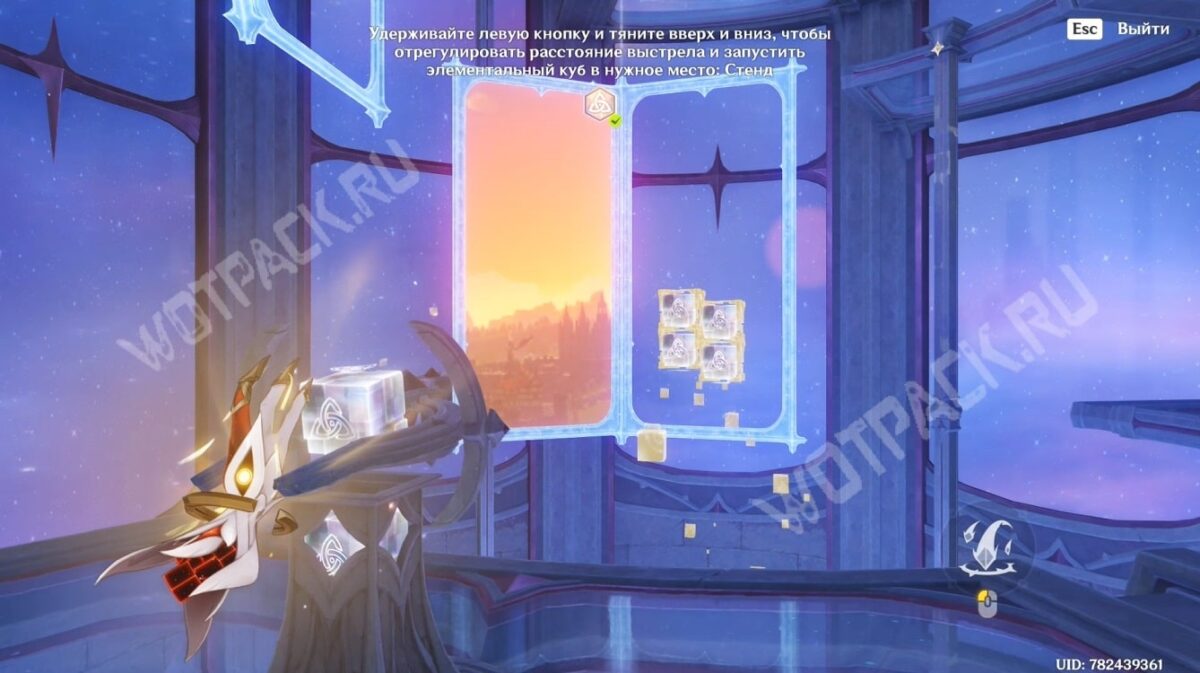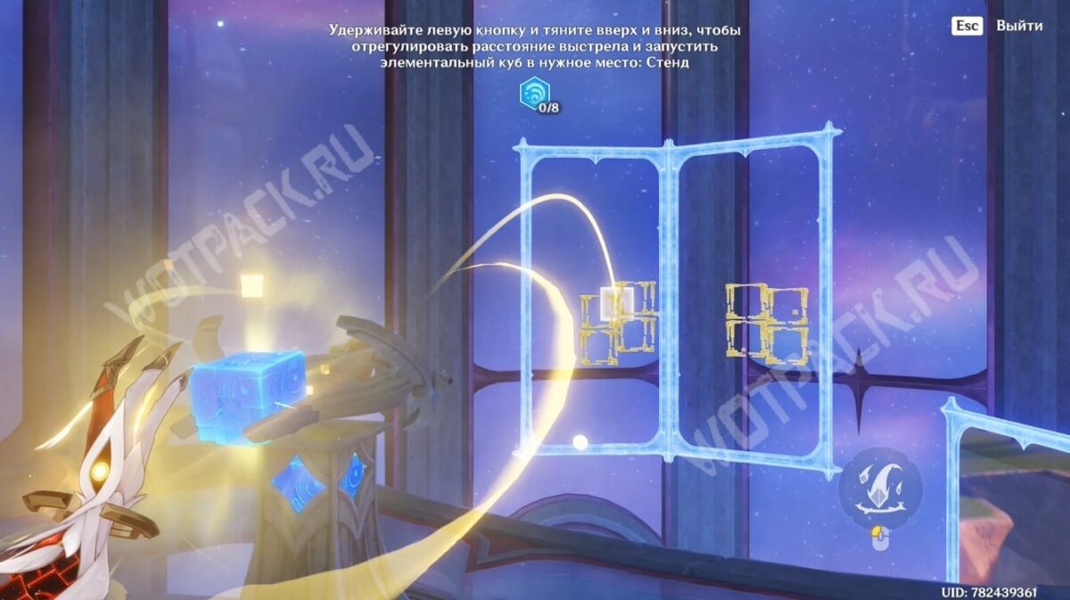 В Genshin Impact во время решения головоломки в центре Зала столпов столкнётесь с новым механизмом — Хранителем Фрагментарной юрисдикции: Метателем. Управляя им, восстановите пейзажи в отражениях зеркал: регулируйте расстояние выстрела и заполняйте пустые отверстия элементальными кубиками. Этим разблокируете энергетический поток, ведущий в тайную зону Храма пространства — Звёздную ночь.