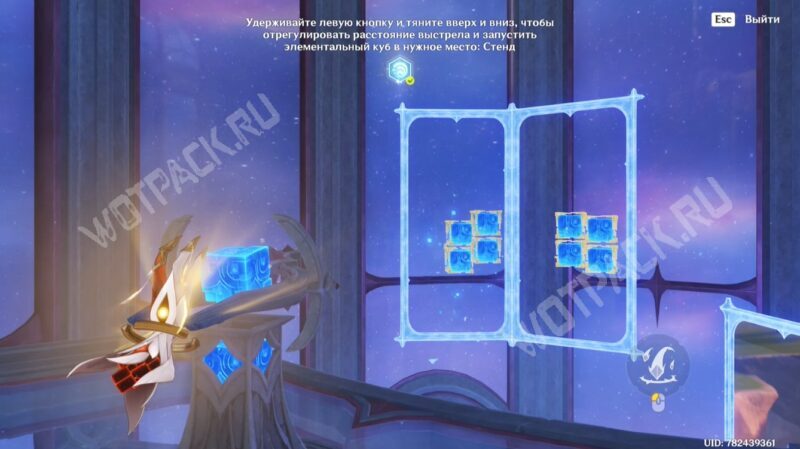 Удерживая левую кнопку, регулируйте расстояние выстрела и заполните все кубические формы фигурками. Для этого тяните вверх или вниз и смещайте курсор влево или вправо. Количество зарядов у аппарата не ограничено.