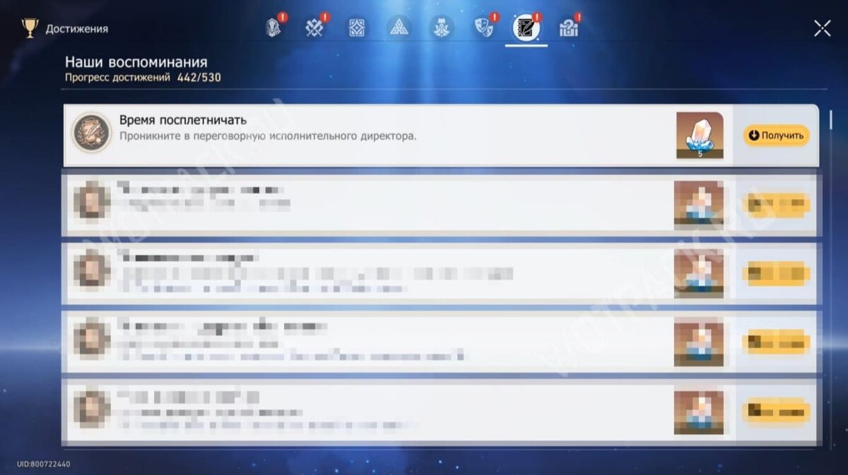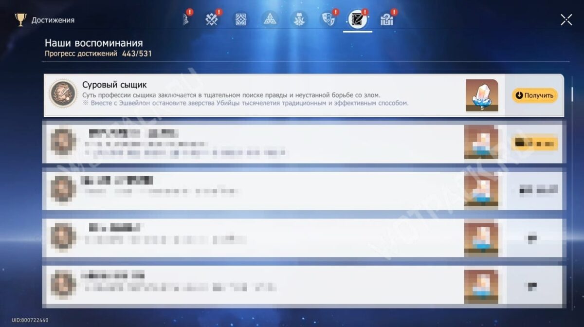 Каждое достижение относится к категории «Наши воспоминания» и приносит звёздные нефриты ×5. Разблокировав одно, автоматически закроете доступ к другому.