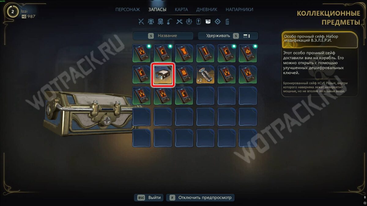 Ящики с кислотным дематериализатором «Тети Космос» и модификациями для ВЭЛ появятся в инвентаре по заданию «Здоровье и долголетие». Остальные контейнеры можно отыскать в колонии — они автоматически перенесутся в модуль для хранения сейфов на корабле.