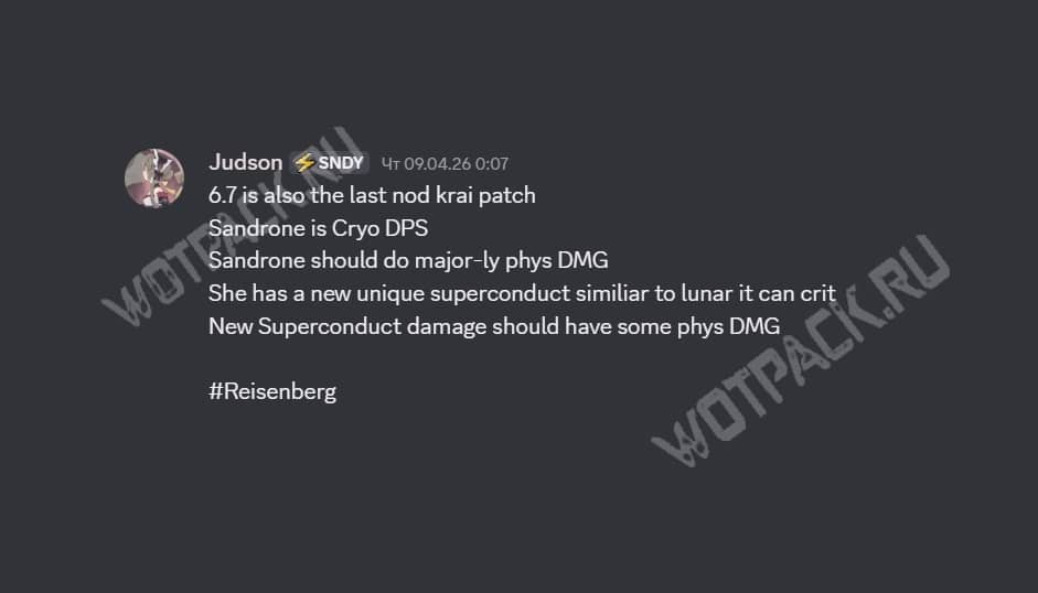 Ну что я могу сказать. Если всё окажется таким, как сейчас есть, то я в шоке от того, что разрабы вспомнили о физе. Ну а так же что-то мне подсказывает, что если будут новые звёздные реакции ( а они я уверен будут ), то это точно не будет таянье и заморозка ( что в принцепи логично ). Единственное что мне кажется странным, так это то, что сигнатурный сет для Сандроне выпустят так рано. Я думал что всё будет как с Инеффой и Нот-Краем ( типа сам персонаж есть, а сет для него только в следующем регионе выйдет ).