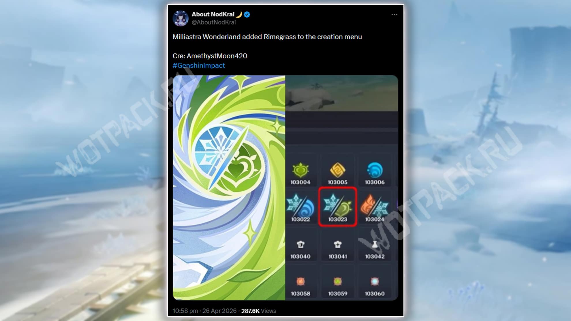 Этот же источник рассказал, что всего в рамках зимнего королевства будет реализовано четыре Звёздных реакции. Две из них уже известны на данный момент — особый Сверхпроводник и взаимодействие Дендро и Крио из Театра Воображариум, именуемое Ледяной травой.