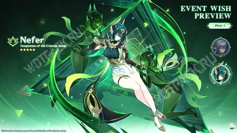 Во второй половине можно будет пригласить в отряд рассказчицу Нефер (Дендро, катализатор) и жрицу Лауму (Дендро, катализатор). В баннере снаряжения появятся их сигнатурные катализаторы: Шкатулка истин и Зеркало прядильщицы ночи.