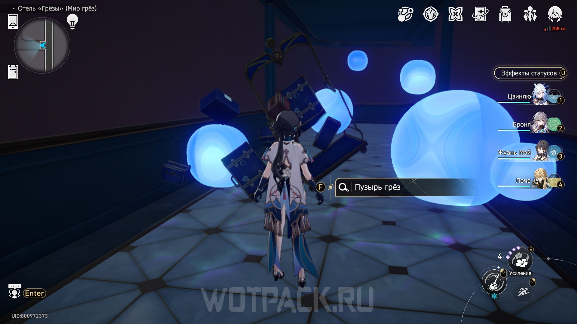 Пузырь грез, преграждающий проход в коридоре Платиновых номеров, — еще один предмет, который можно осмотреть.