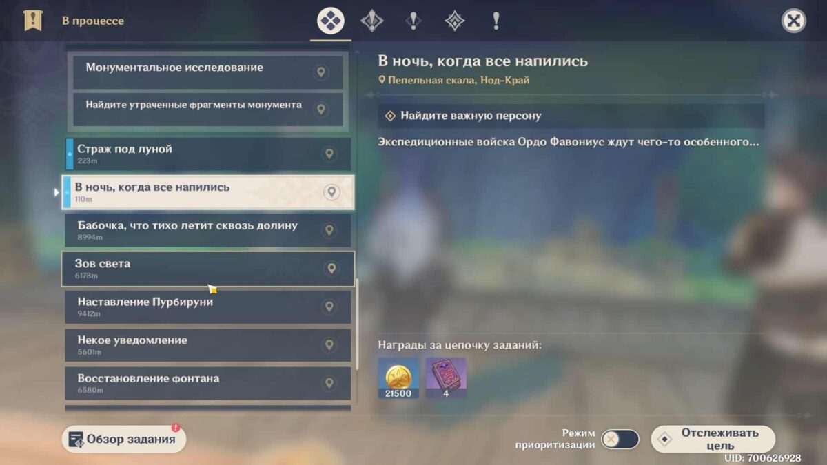 Прохождение задания В ночь, когда все напились в Genshin Impact