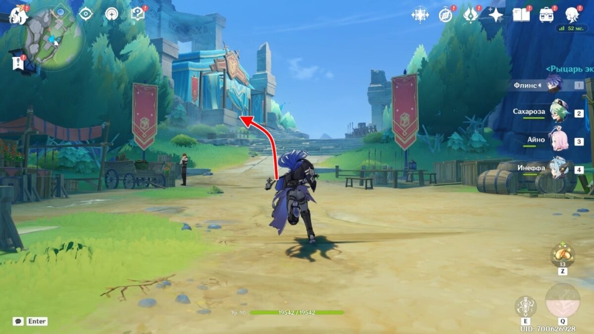 - Встаньте так, чтобы тара с вином оказалась между персонажем и квестовым маркером.