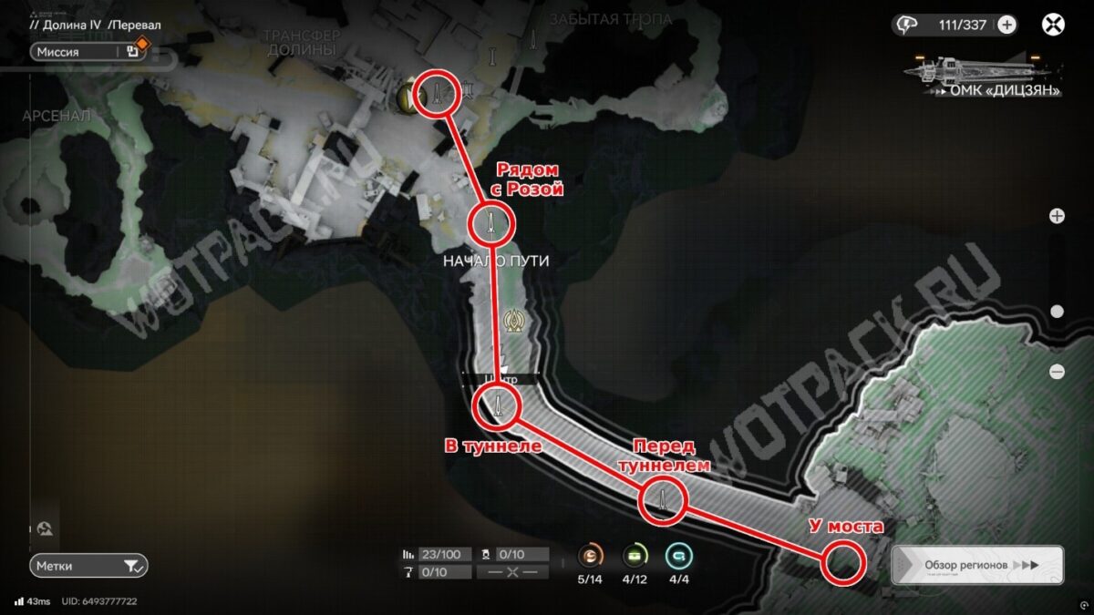- В 80 метрах от предыдущего узла, рядом с лагерем Розы, поставьте следующую опору.