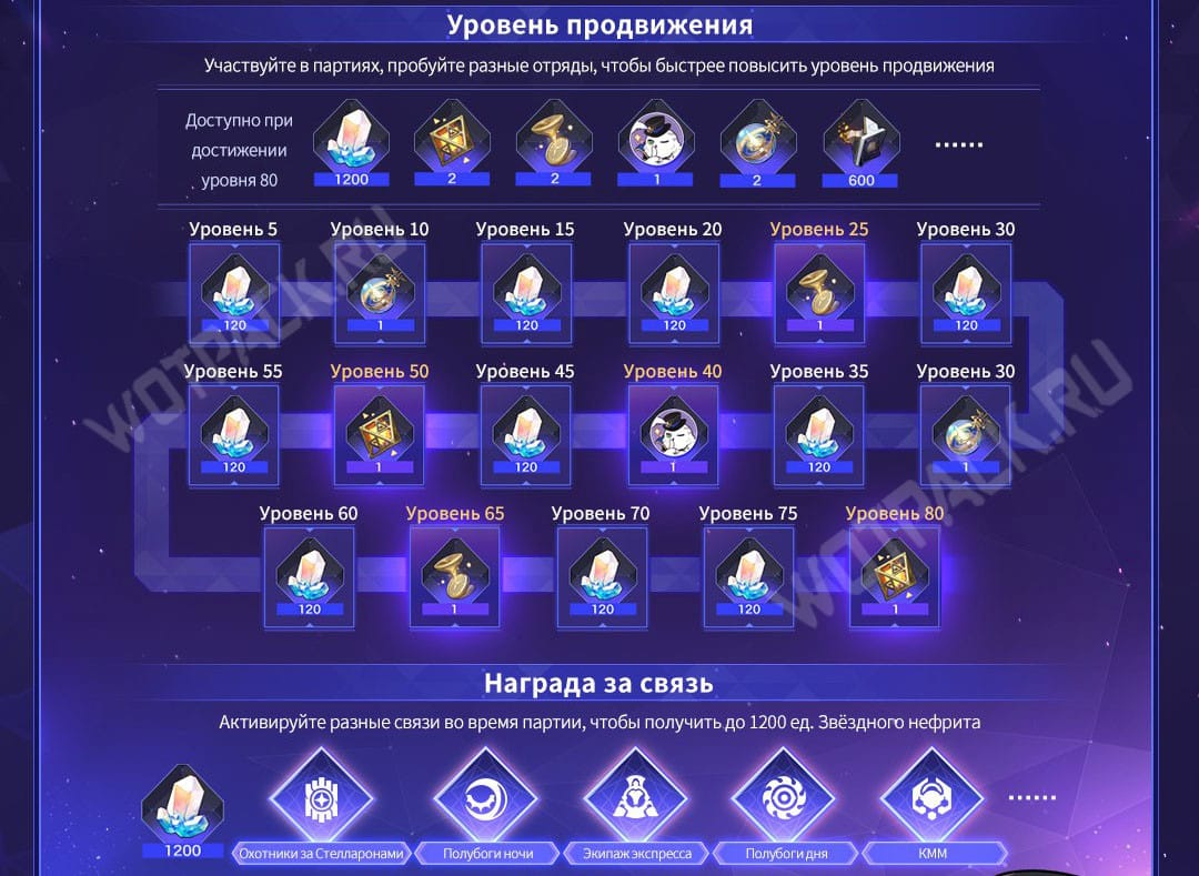 По мере получения очков продвижения в Хонкай: Стар Рейл и повышения уровня в режиме Валютные войны, сможете забрать в награду: