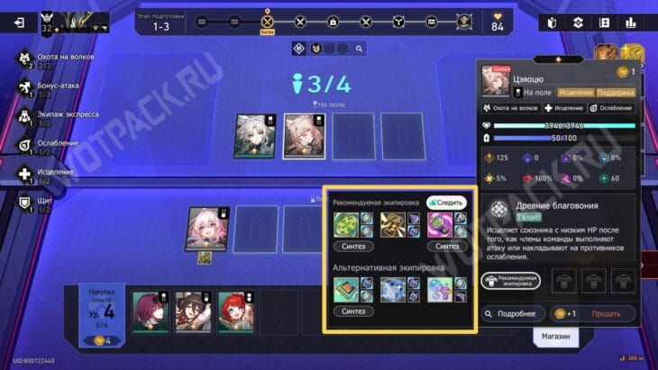 - Наденьте на 3 разных персонажей всю рекомендуемую экипировку. Соберите все рекомендуемые варианты снаряжения на трёх героев и наденьте их.