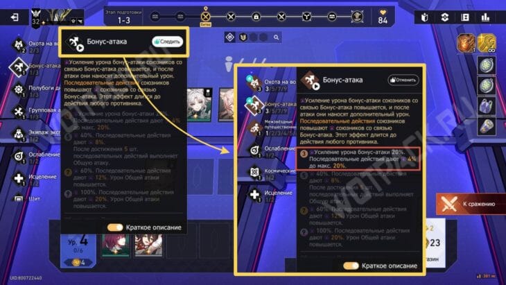 Главные бонусы, значительно усиливающие команду, — это связи, которые образуются между персонажами и, как итог, предлагают хорошие баффы, расширяющие боевую эффективность. Они имеют разделение на фракции и направления.