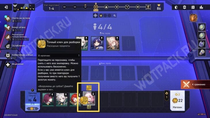 Опыт для этого процесса можно либо купить за золотые монеты, либо получить в качестве награды за успешное прохождение этапа битвы.