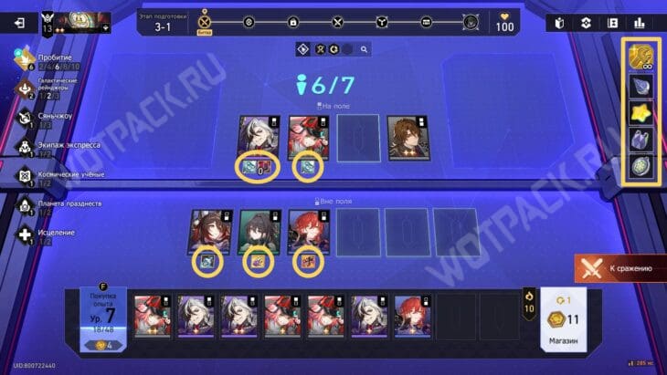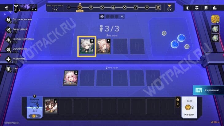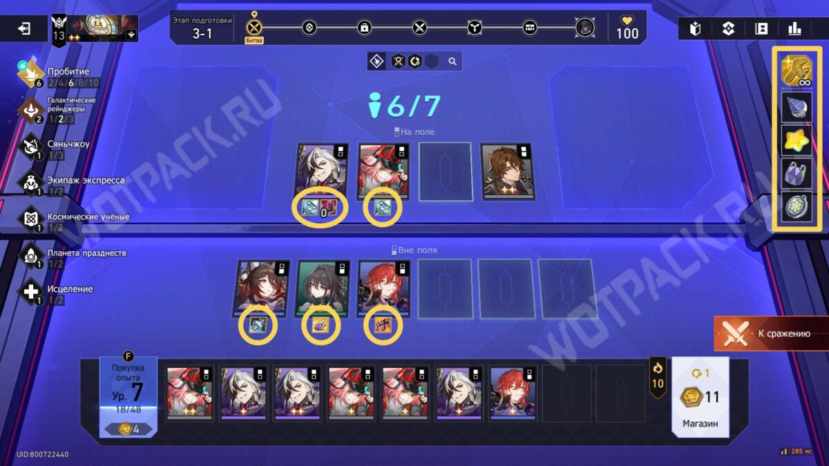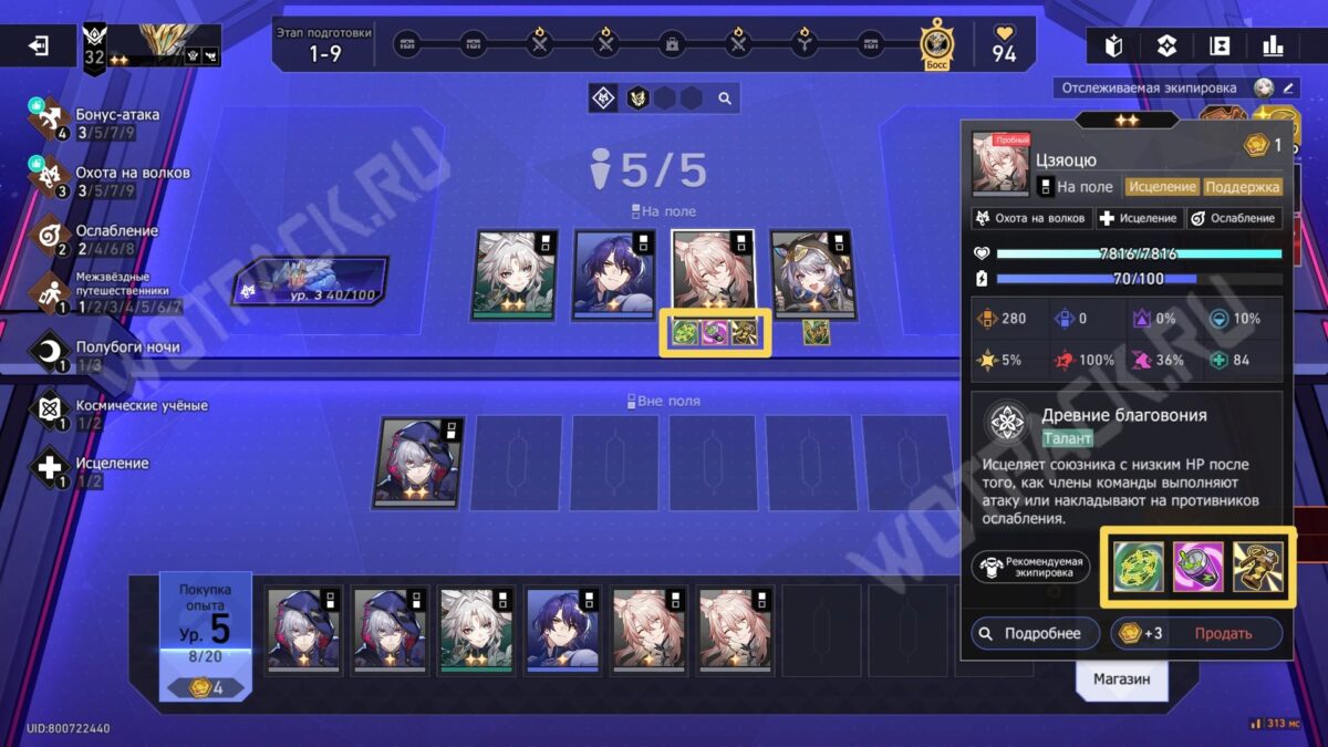 Так, например, «госпожа» Темень и кукла Герта являются персонажами типа «на поле/вне поля», а златиус Цифер и предсказательница Цинцюэ принадлежат к категории «на поле». Их размещение на правильные позиции позволит раскрыть боевой потенциал на максимум.