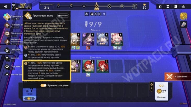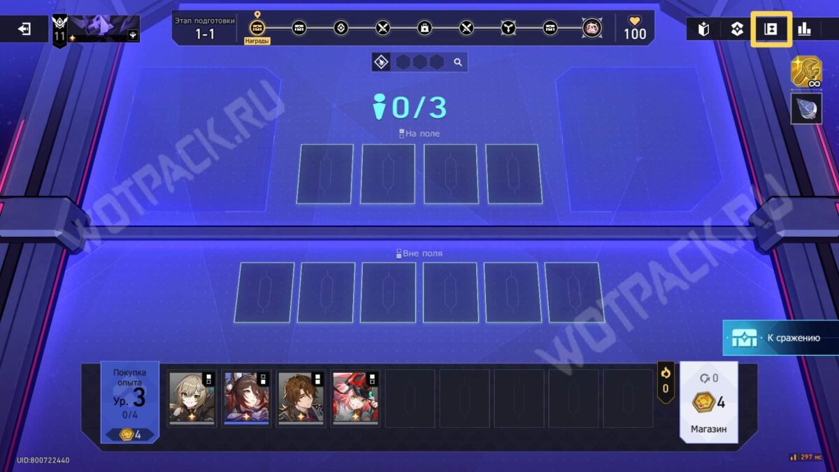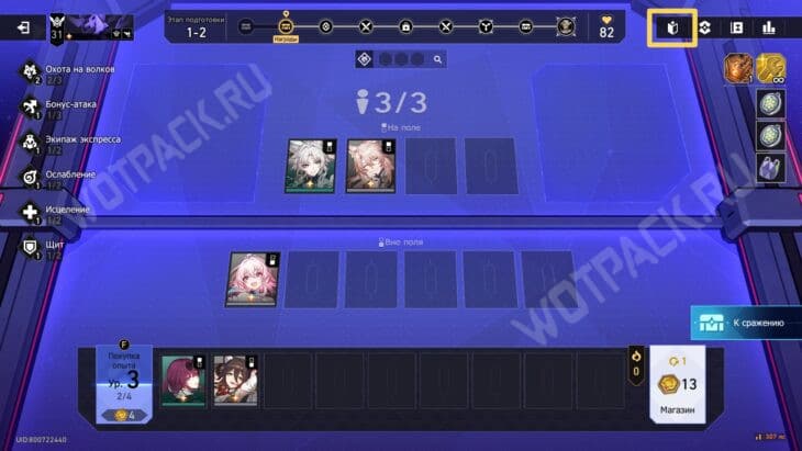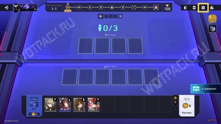 Зона подготовки для настройки группы разделена на две линии: на поле и вне поля. У каждого персонажа есть свою позиция: