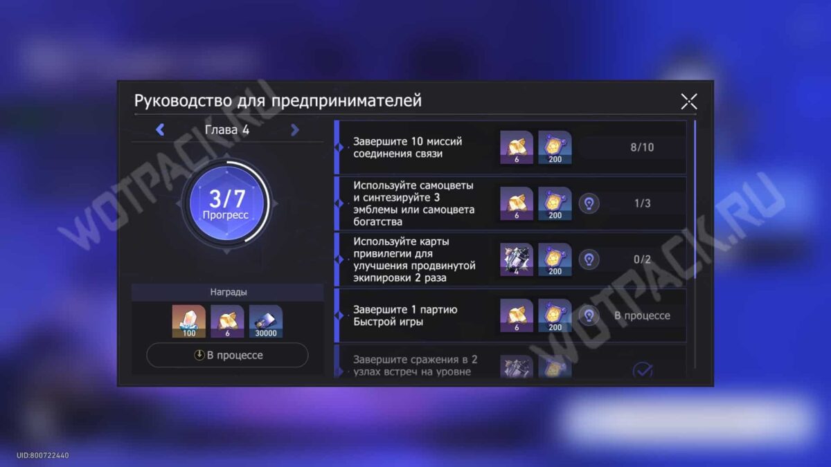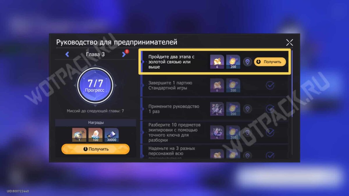 Руководство для предпринимателей — справочник с заданиями, разделённый на несколько глав. Завершив каждую, можно получить ценное вознаграждение, включая звёздные нефриты для Особых звёздных пропусков.