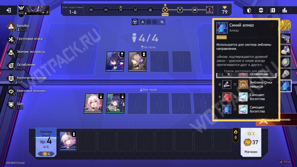 - Используйте самоцветы и синтезируйте 3 эмблемы или самоцвет богатства. При помощи красного/синего алмаза синтезируйте эмблему фракции/направления либо особый кристалл, который даёт +1 к участникам на поле и ускоряет получение основной валюты.