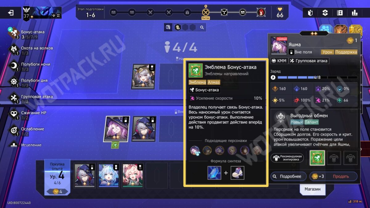 - Экипируйте 2 разные эмблемы. Создайте «карточку» фракции/направления и наденьте её на одного из героев. Если не знаете, кому может подойти эмблема, воспользуйтесь подсказкой от системы.