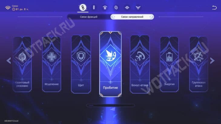 - Активируйте золотую связь. Начните отслеживание одной связи (фракция/направление) и доведите её до золотого уровня (3 этап усиления).