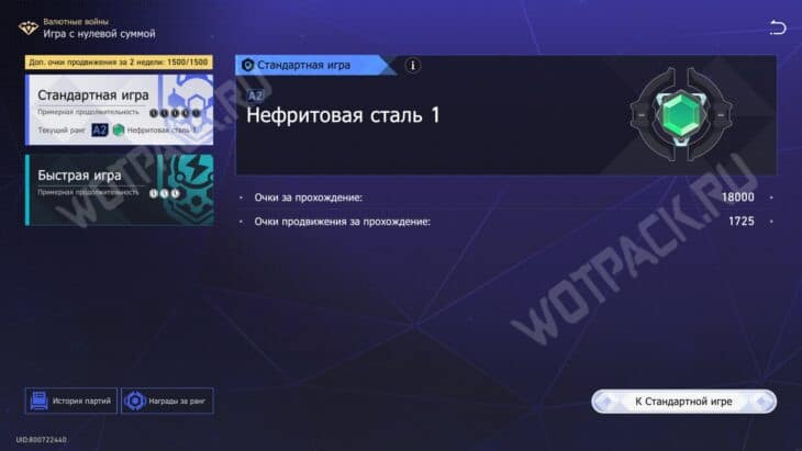 - Стандартная — содержит испытания соответствующей сложности ранга и позволяет подниматься по рейтинговой системе.