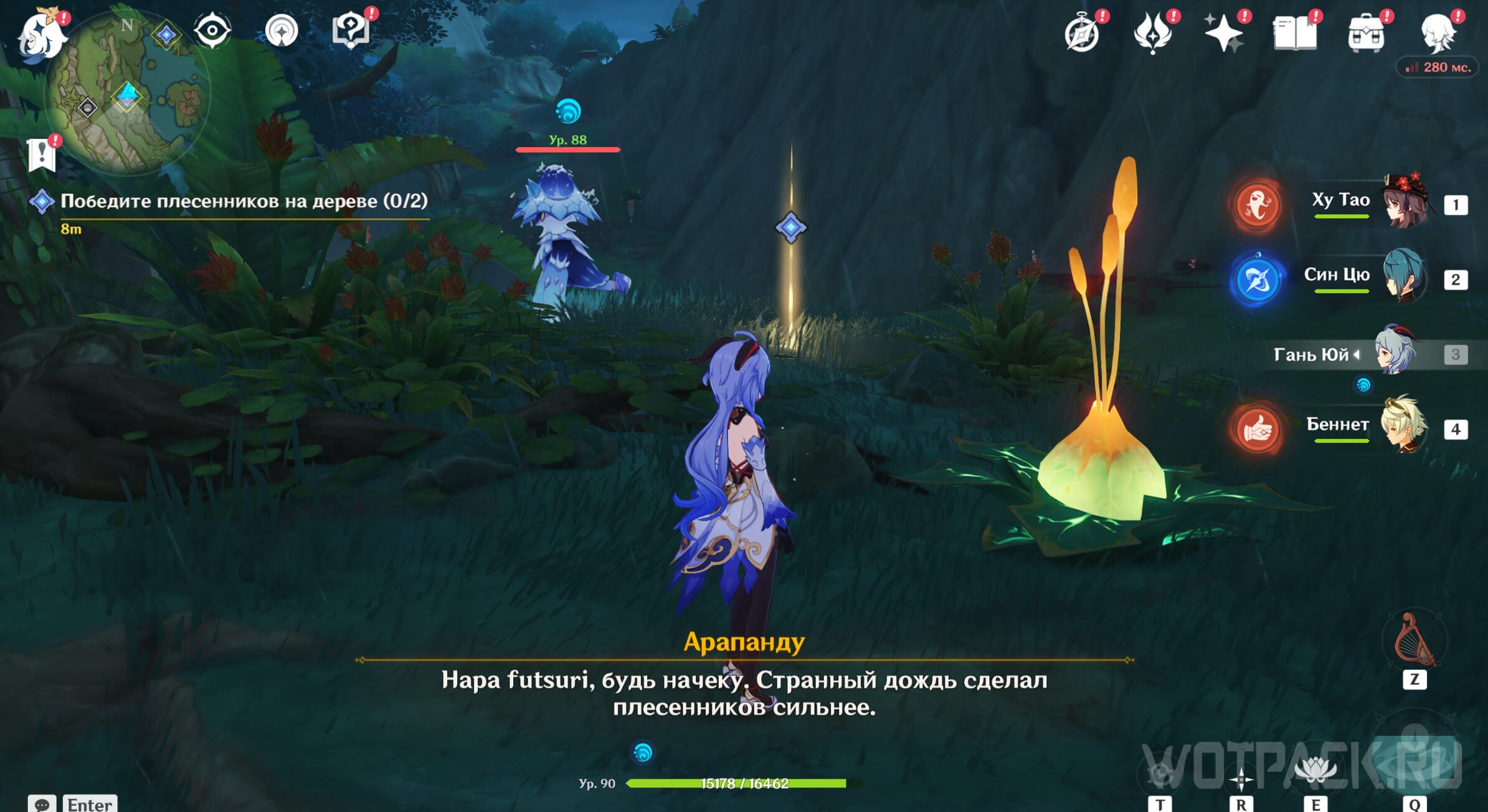 Как только спуститесь в область задания, сразу же обнаружите Арапанду, которого окружили плесенники. Разберитесь с противниками. После этого начнется диалог с аранарой, в ходе которого он расскажет про нару Варуну, которая помогла Ванаране справиться с бедой.