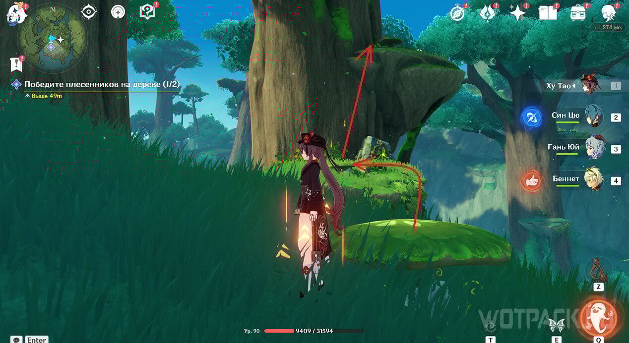 Забравшись на нижний ярус дерева напротив подземелья, подпрыгните на грибе, после чего пролетите повыше при помощи четырехлистного символа. У маркера расположен один плесенник, которого надо уничтожить.