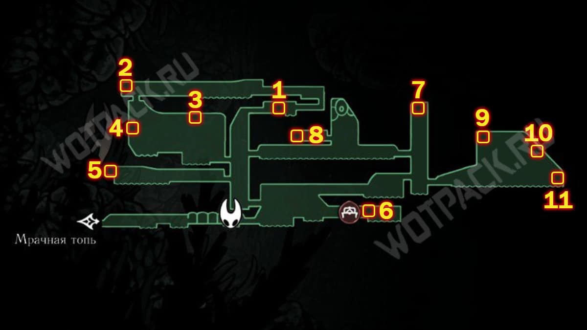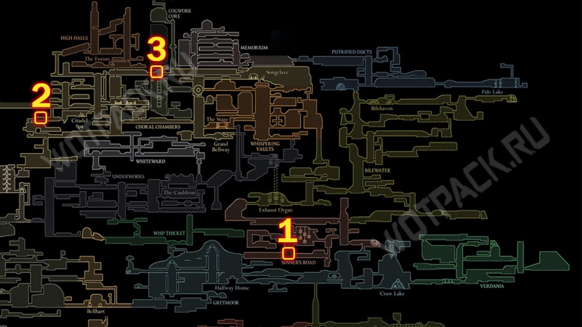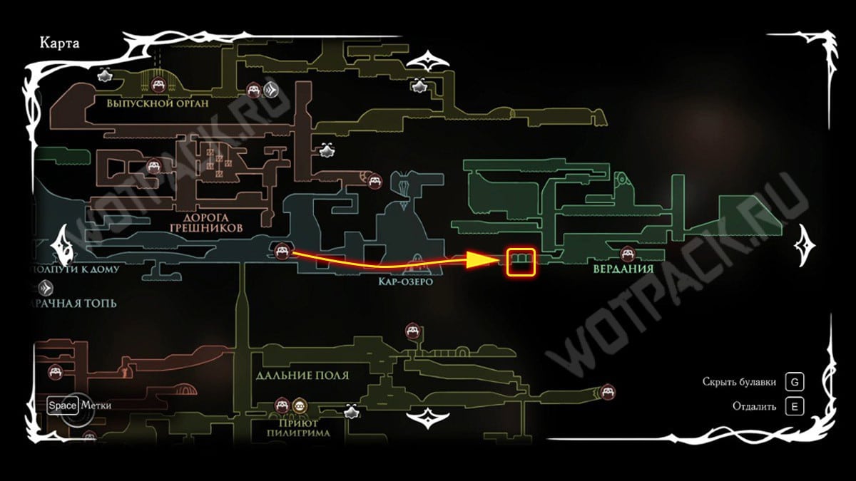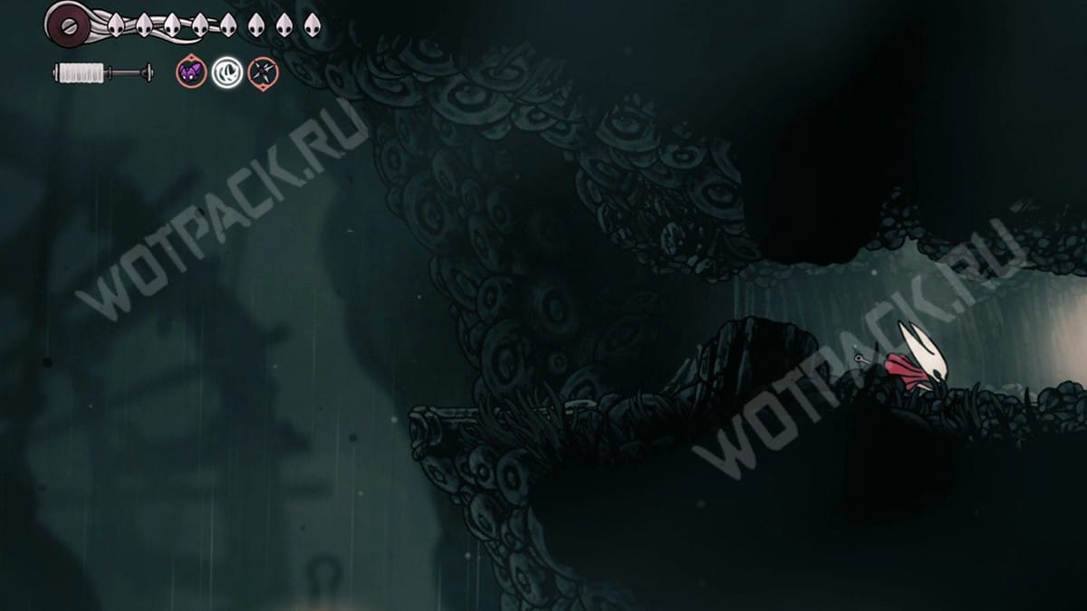 В эту зону Хорнет обязательно попадет по сюжету, однако понадобится обязательно изучить Цепкий захват. Стандартный путь сюда открывается с соседней Мрачной топи. Если желаете быстрее оказаться рядом, то соберите пять потерянных блох, чтобы отправиться в путешествие вместе с их караваном.