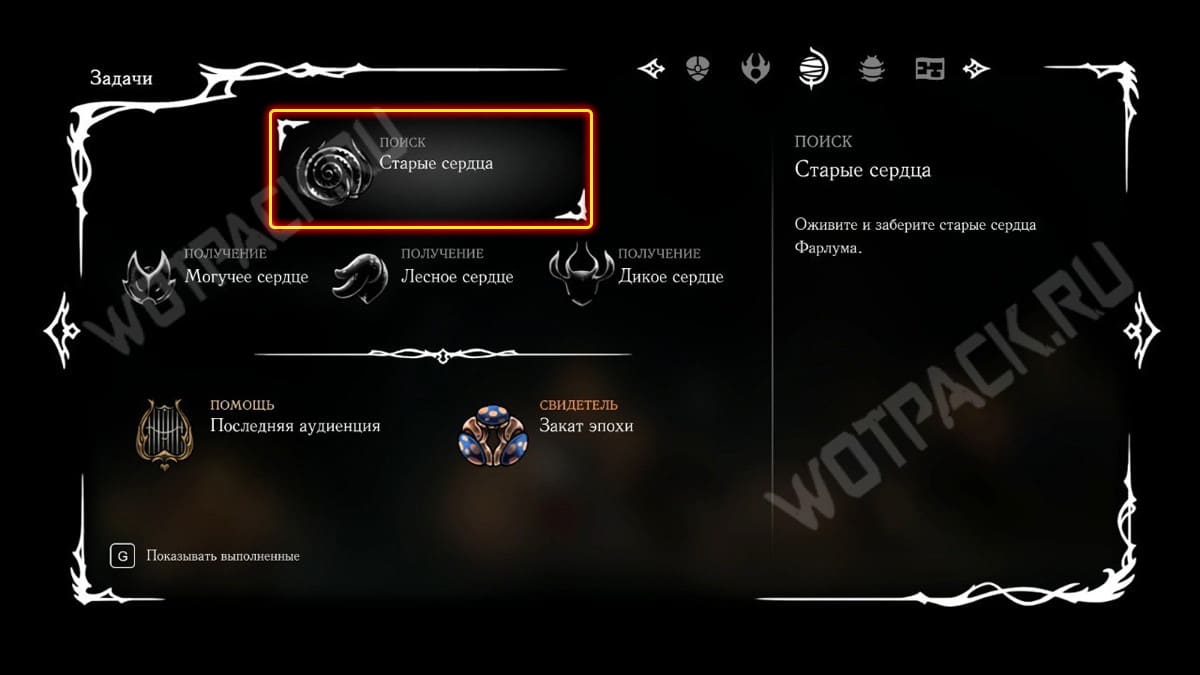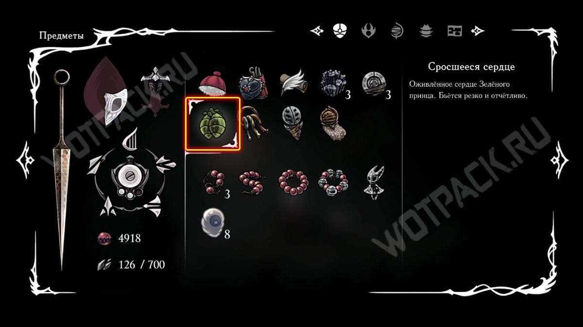 Сдать вместо одного из трех компонентов для желания «Старые сердца». | Мшистый грот | Раздобыть сросшийся орган до сбора полного набора из прочих сердец. |
