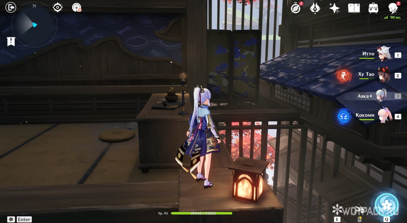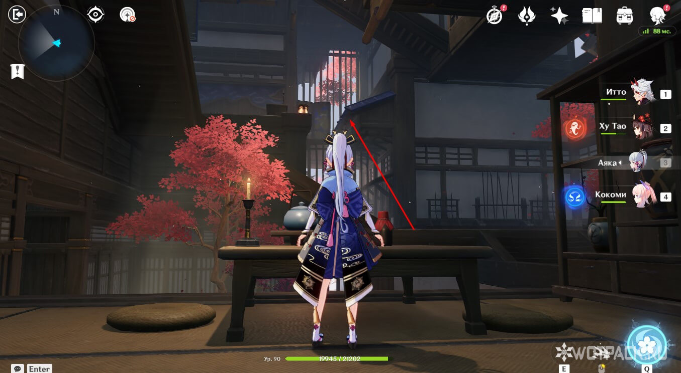 Взлетите на воздушном потоке и перейдите в следующую комнату. Там будут слышны отголоски прошлого: Кадзуха, оставшись последним представителем своего рода, решает кардинально изменить свою жизнь и отказаться от прошлого. Подберите омамори над столом и поставьте его в святилище.