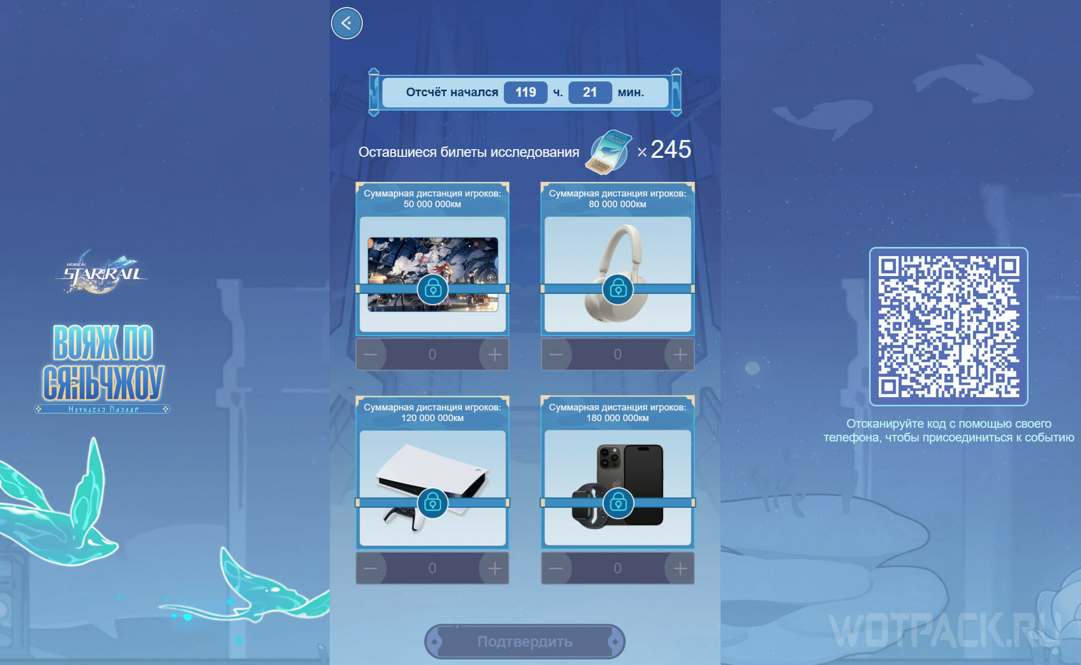 Вояж по Сяньчжоу в Honkai: Star Rail – веб-событие с общим прогрессом по серверу. В ходе ивента за прохождение мини-игры удастся получить звездный нефрит и памятную рамку аватара HoYoLab. Также сможете испытать удачу в розыгрыше более ценных призов: комплекта из iPhone 14 Pro и Apple Watch Series 8, PlayStation 5, коврика для мыши и наушников Sony WH-1000XM5.