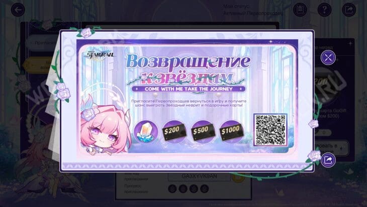 В Honkai: Star Rail особый ивент Возвращение к звездам обновляется раз в несколько патчей и представляет собой постоянную активность. Игрокам предлагается вернуть друзей, забросившим игру, и получить награды за их приглашение и ежедневные активности.