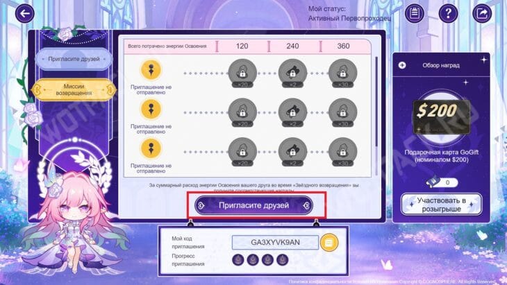 Для получения большего количество наград необходимо, чтобы вернувшиеся игроки постоянно тратили энергию Освоения. Обратите внимание, что если какой-то игрок перешел по ссылке, но не стал тратить энергию, то «удалить» его, как неактивного, невозможно.