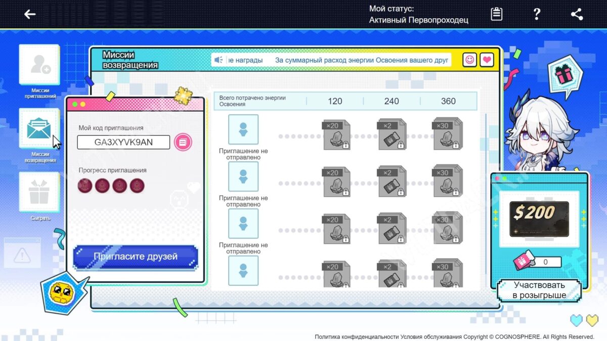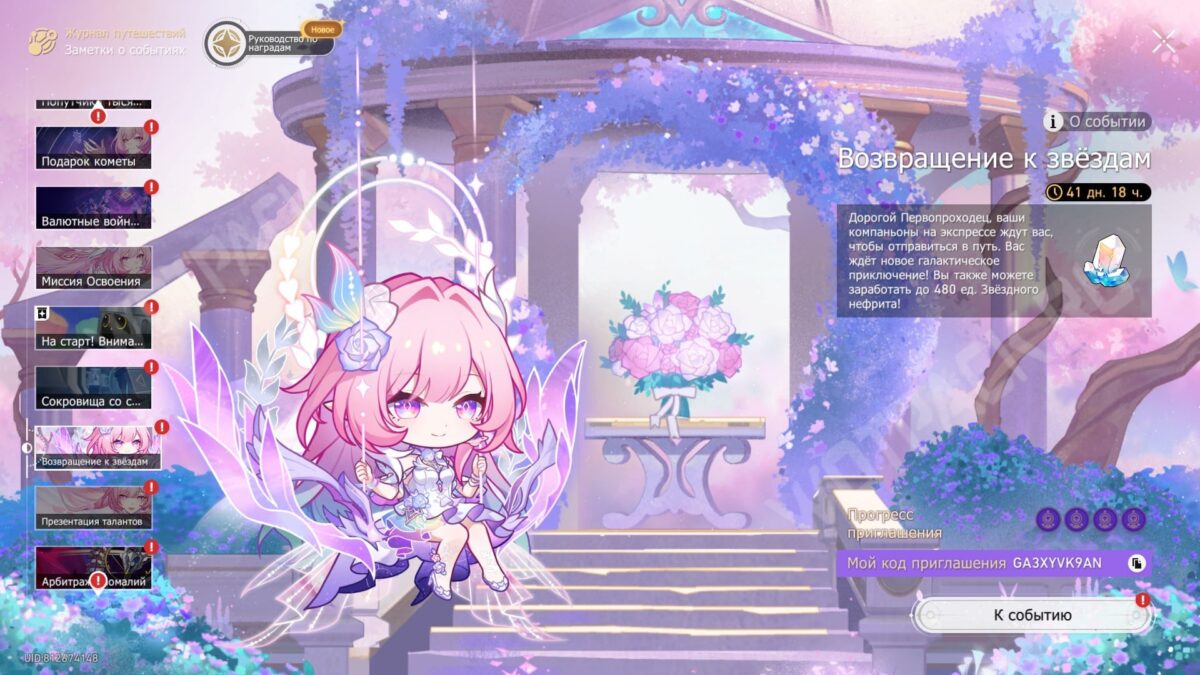 В Honkai: Star Rail особый ивент Возвращение к звездам обновляется раз в несколько патчей и представляет собой постоянную активность. Игрокам предлагается вернуть друзей, забросившим игру, и получить награды за их приглашение и ежедневные активности.