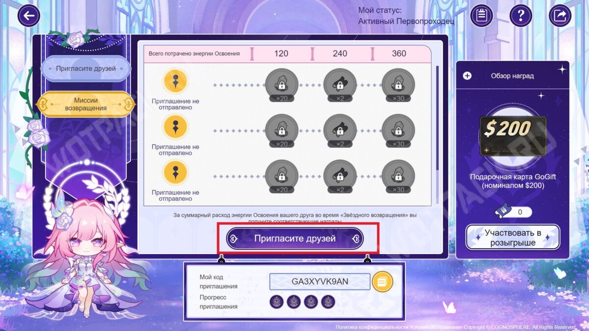 Для получения большего количество наград необходимо, чтобы вернувшиеся игроки постоянно тратили энергию Освоения. Обратите внимание, что если какой-то игрок перешел по ссылке, но не стал тратить энергию, то «удалить» его, как неактивного, невозможно.