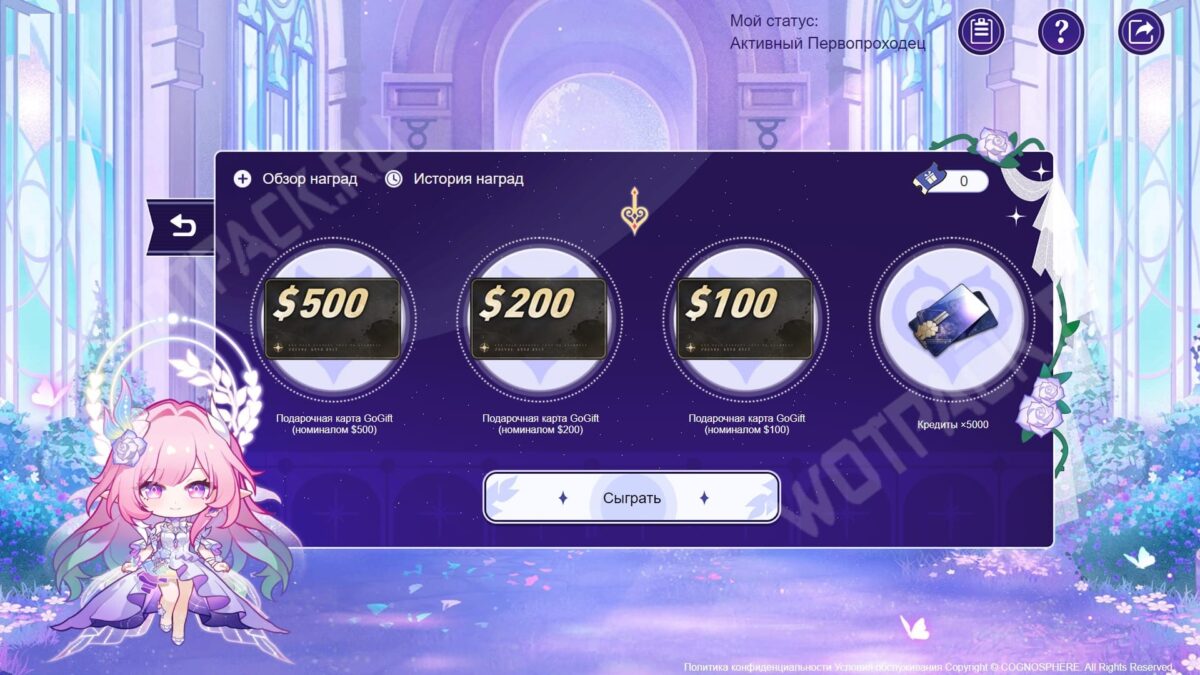 Особая ивентовая валюта, билеты для розыгрыша, с помощью которых можно крутить барабан с материальными призами, выдается только за приглашение игроков.
