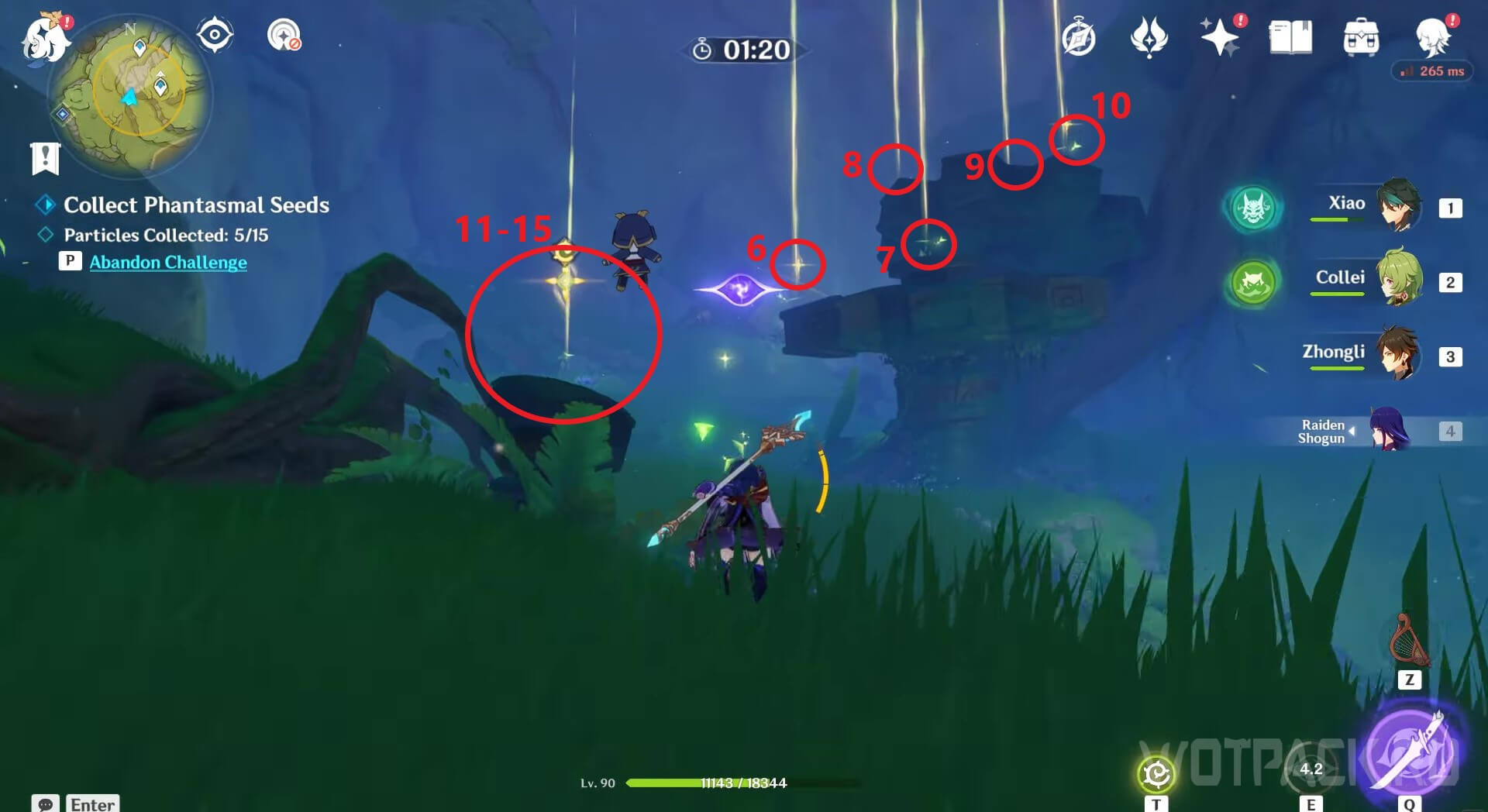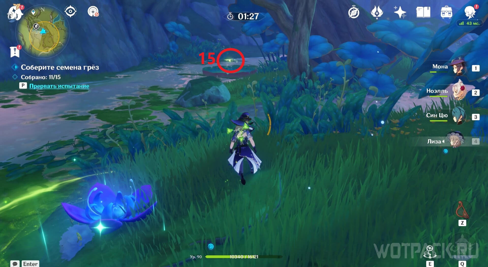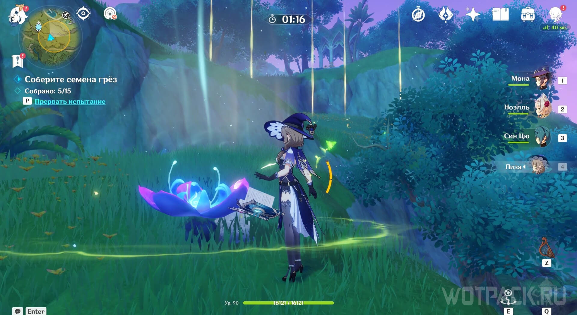 До испытания легко долететь от Статуи семи Архонтов в субрегионе Земля Ашаван. Можно условно поделить маршрут сбора семян грез на 3 зоны. Зона 1 — огороженная Дендро колючками местность с семенами в северо-западном направлении от врат. Собрав все частицы, поднимайтесь на 2 горные ступени выше.