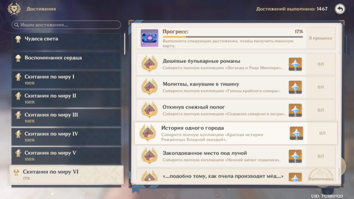 Поиск книг в Нод-Крае откроет вкладку «Скитания по миру 6». В ней находится 6 записей с наградами по 5 примогемов (всего 30):