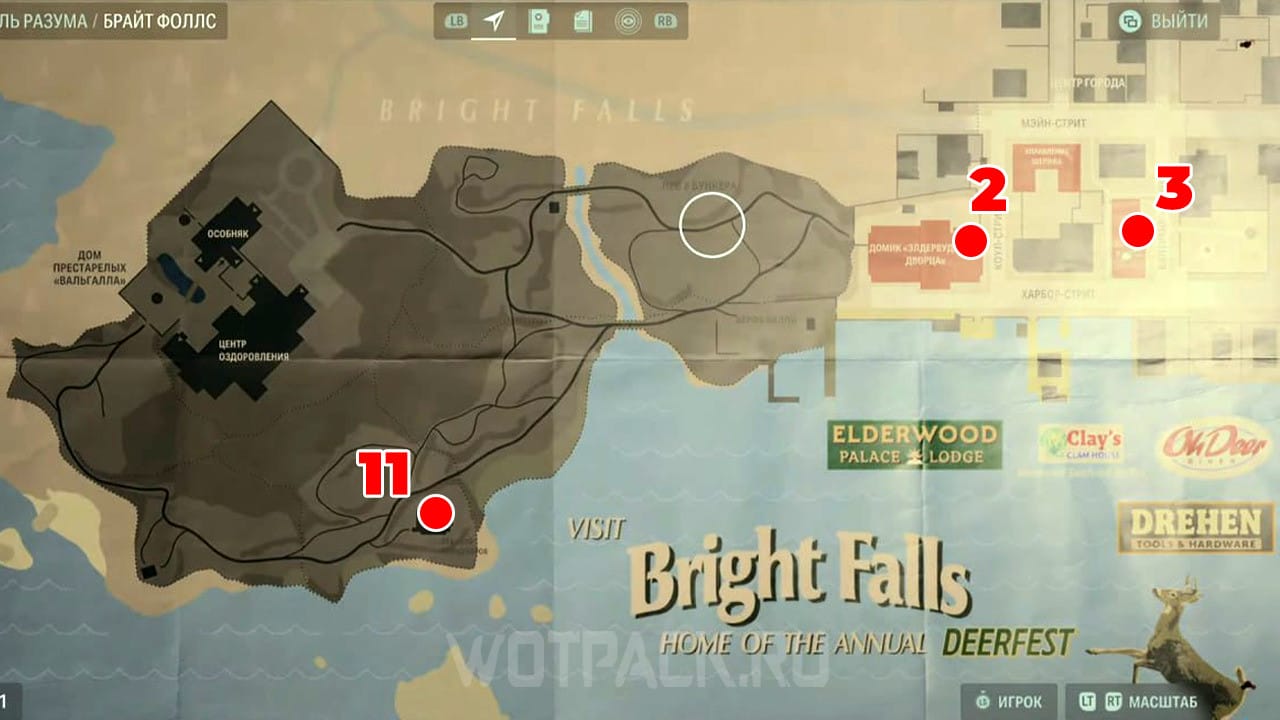 Следующие две головы можно найти в городе Брайт Фоллс, после того, как вернетесь в машину и доберетесь до нового места. Посетите домик «Элдервудского дворца», расположенный на северо-востоке, и исследуйте дальнюю комнату справа.