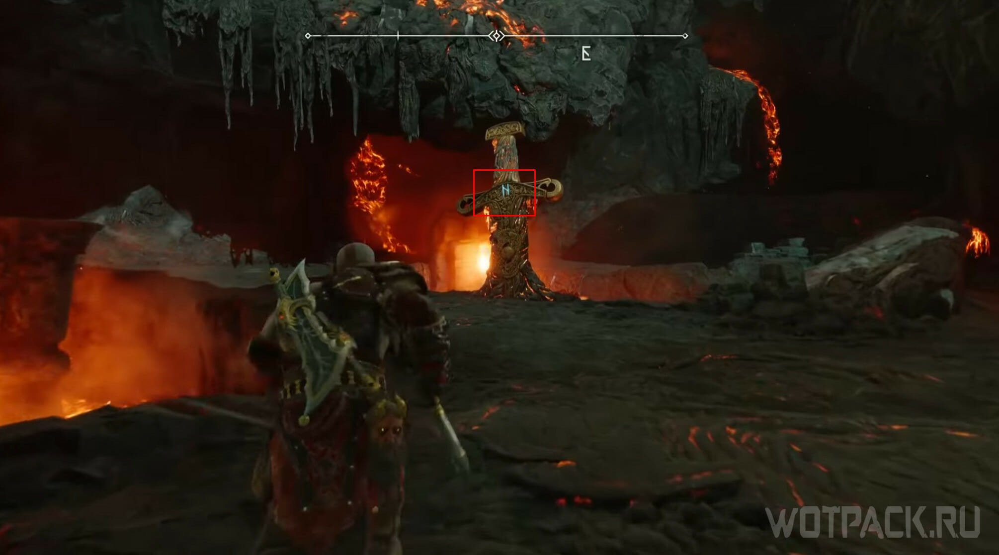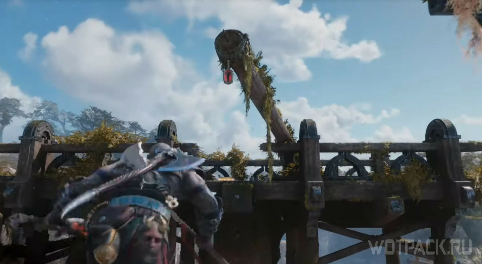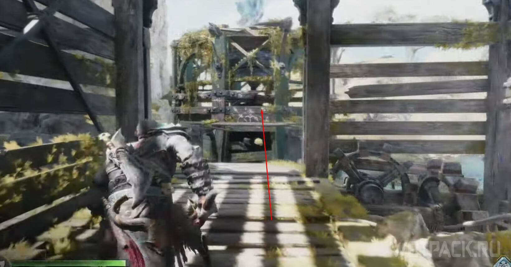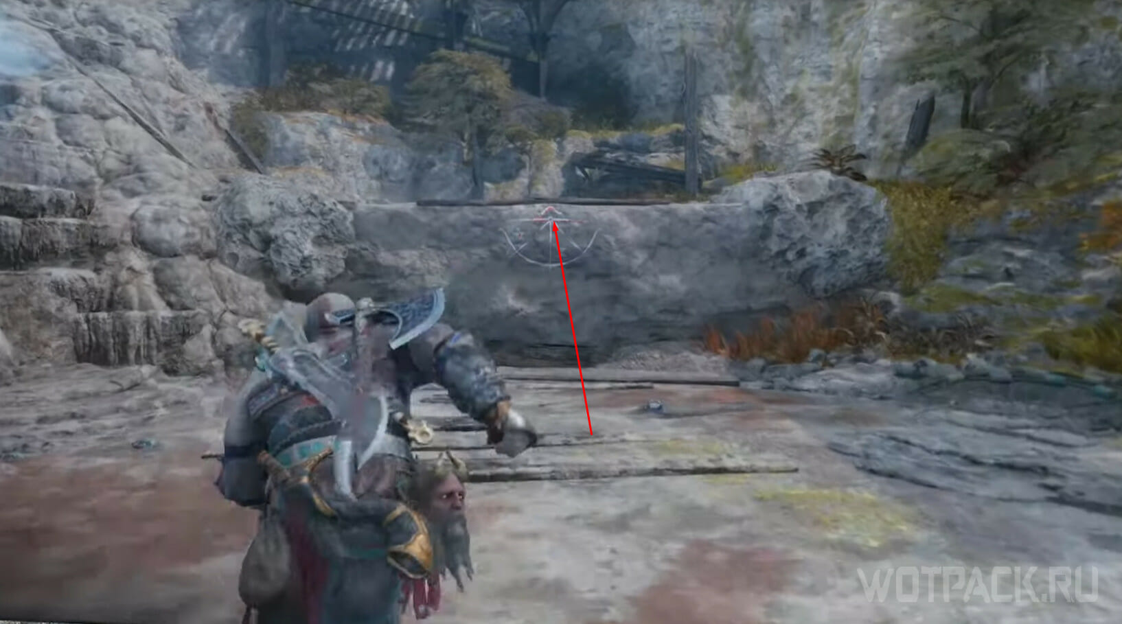 Заберитесь на самую вершину деревянного строения, одолейте врагов и откройте легендарный сундук: внутри Кратоса ожидает первый фрагмент для путешествия в Муспельхейм.