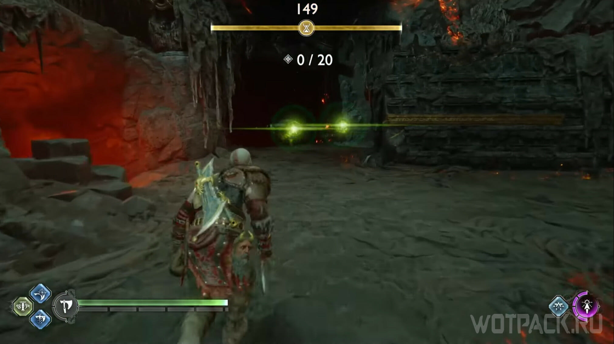 Основная проблема – поддержания здоровья Кратоса, поэтому предварительно экипируйте снаряжение и умения, которые позволят регенерировать здоровье. Например, комплект брони Нидавеллира, Спартанская доблесть.