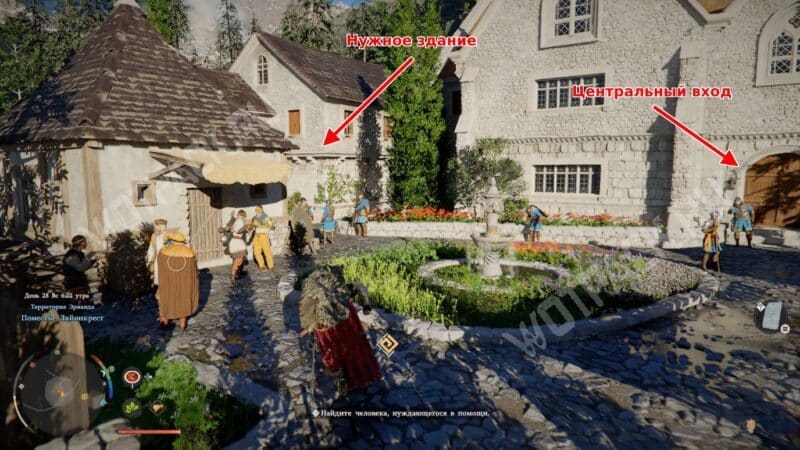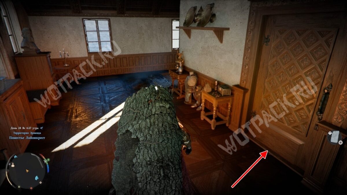 Нужная комната расположена на втором этаже отдельно стоящего дома слева от центрального входа. Если не выполняли квестовую линию дома Альфонсо, стража внутрь не пустит. Подойдите к дому с южной стороны и заберитесь в окно с плотно закрытыми деревянными ставнями.