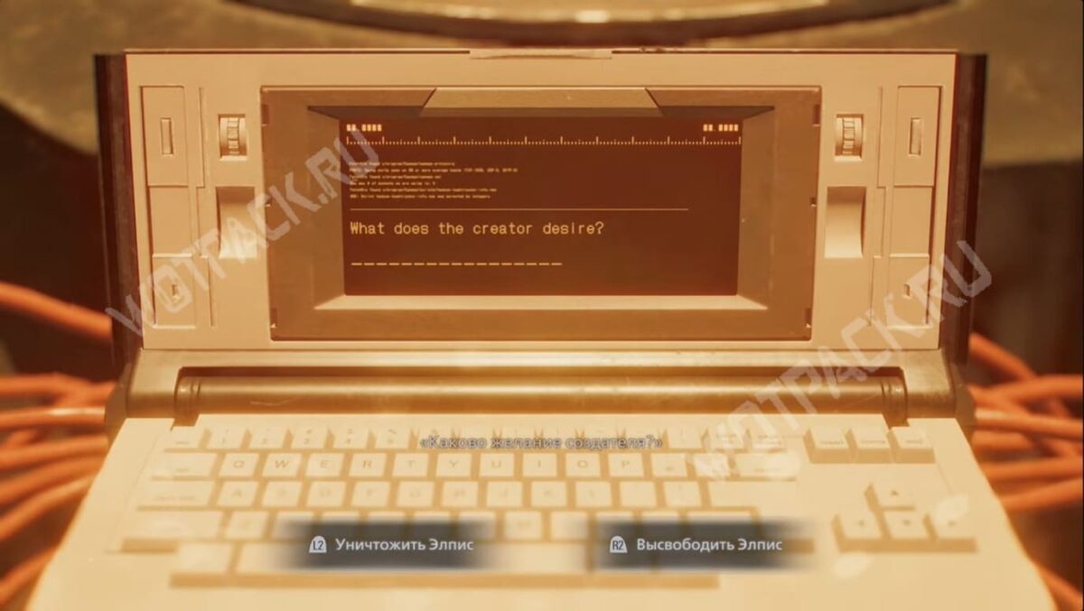 Для получения любой из доступных развязок достаточно просто сделать выбор в момент ввода кода в терминал за Грейс. На вопрос «Каково желание создателя?» выберите один из ответов: