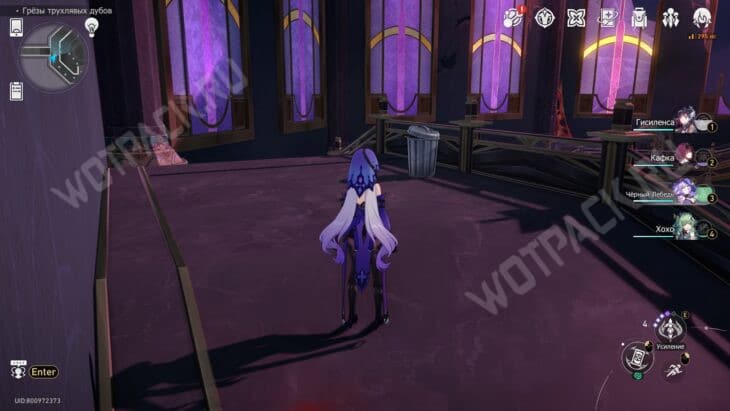Для поиска используйте пространственный якорь «Коридор воспоминаний» на юге, после чего проследуйте в правую комнату. Победив небольшой отряд монстров, осмотрите стены маленького помещения: таким образом, увидите одинокую мусорку.