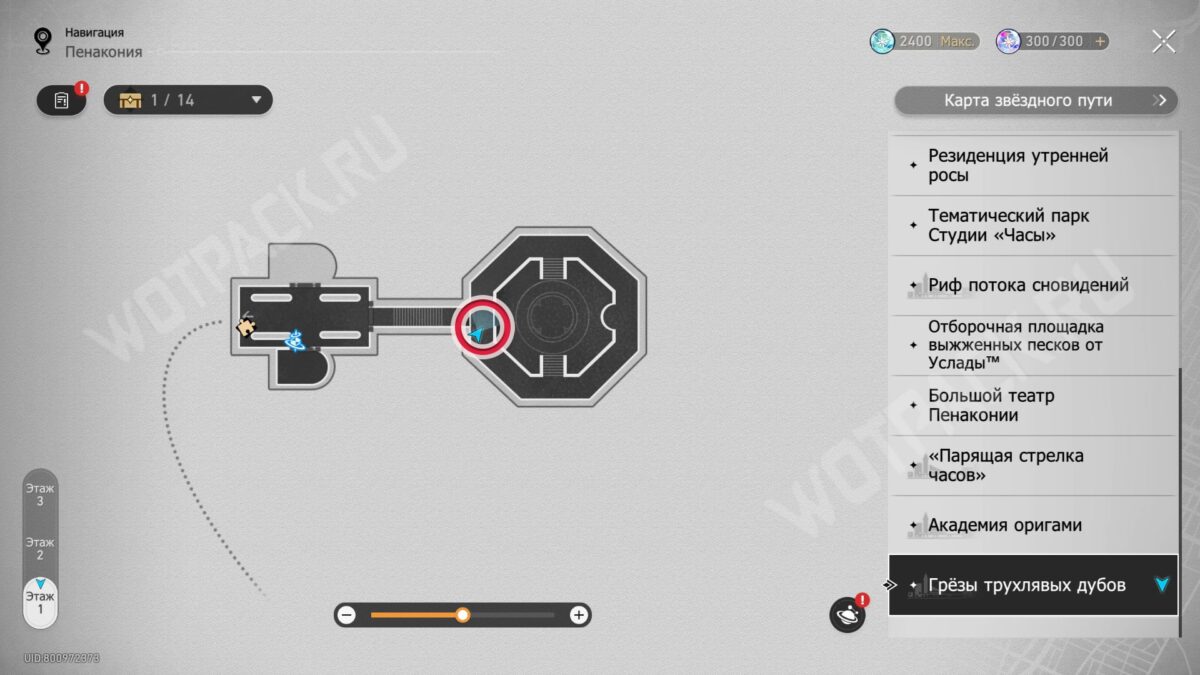 Местонахождение следующего ожившего контейнера — рядом с ходиком Мира грез, в северном секторе области, — поскольку он обозначается на карте, можете взять его за основной ориентир на пути к необычному жителю Золотого мига, если ранее не решали головоломку.
