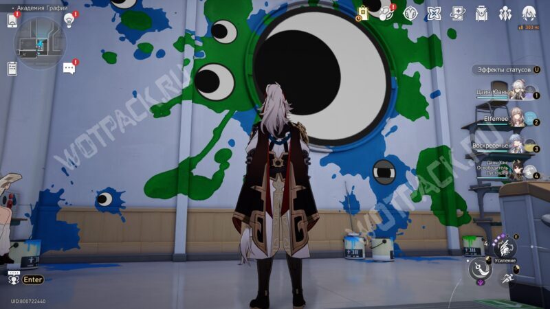 Пообщайтесь со странно одетым зрителем — фантазмом в образе рейнджера пустоты. Сразитесь с монстром, чтобы заточить его в картине.