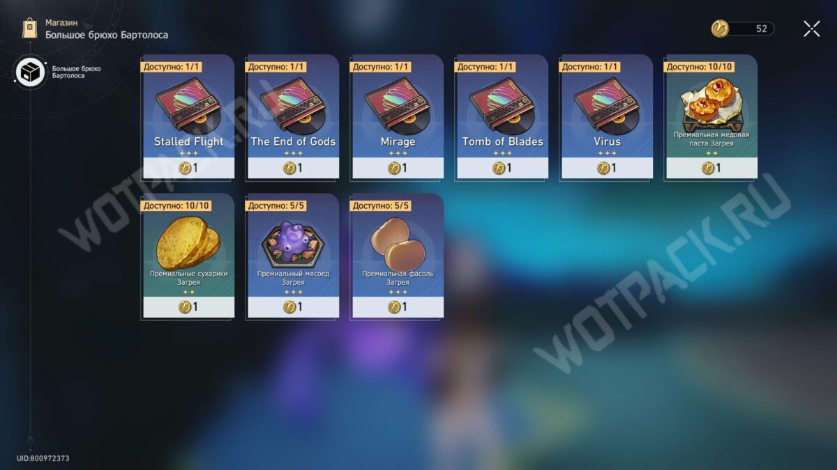 - Музыкальные пластинки «Stalled Flight», «The End of Gods», «Mirage», «Tomb of Blades», «Virus» по цене 1 монета за каждую.
