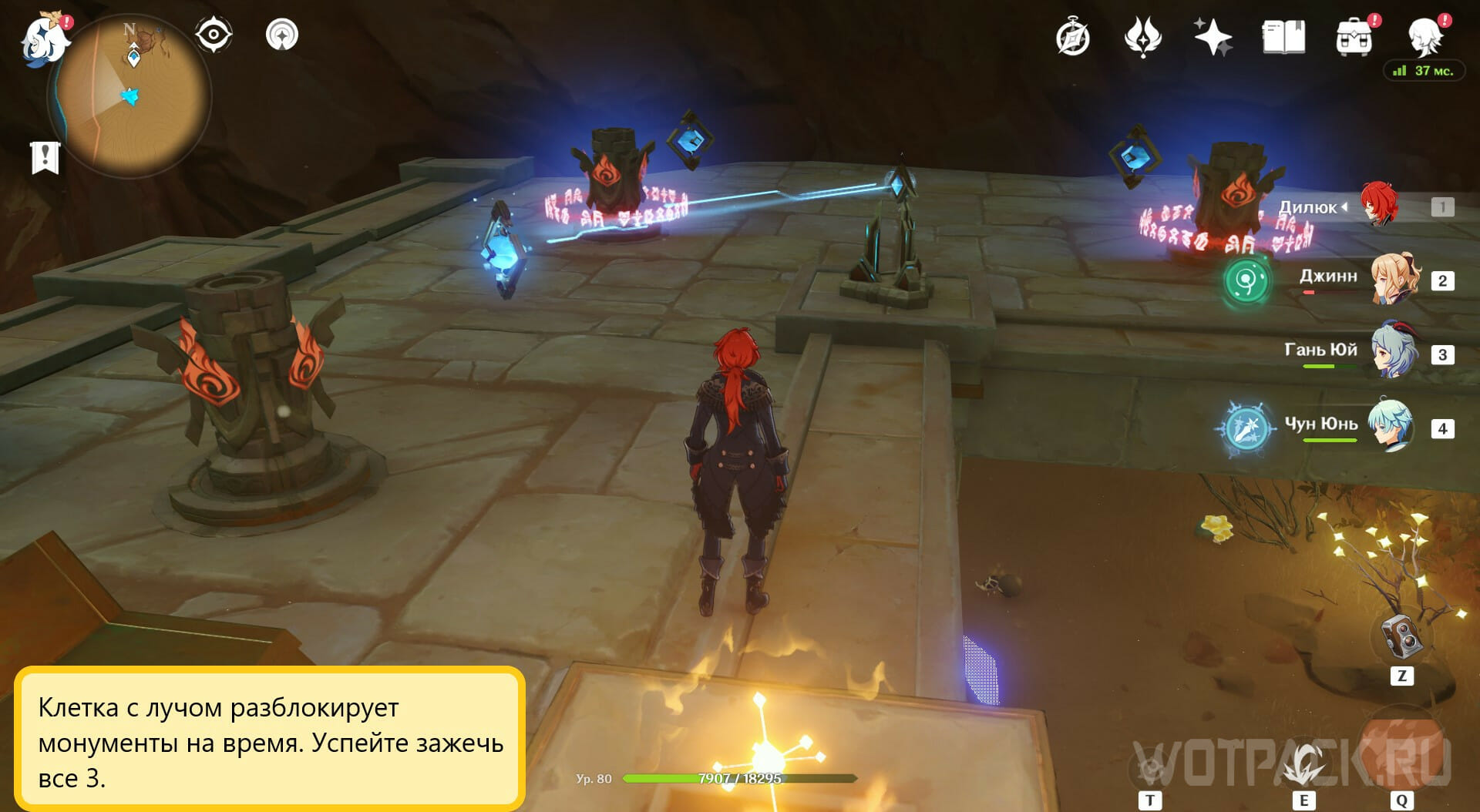 - Успейте зажечь оба монумента Пиро стихией, пока клетки не поехали обратно.