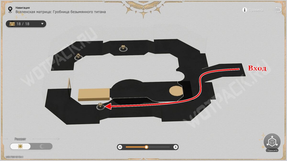 Далее представлен общий маршрут для перемещения по этажам храма с весами, при помощи которого можно добраться до всех трех плит из начального положения.
