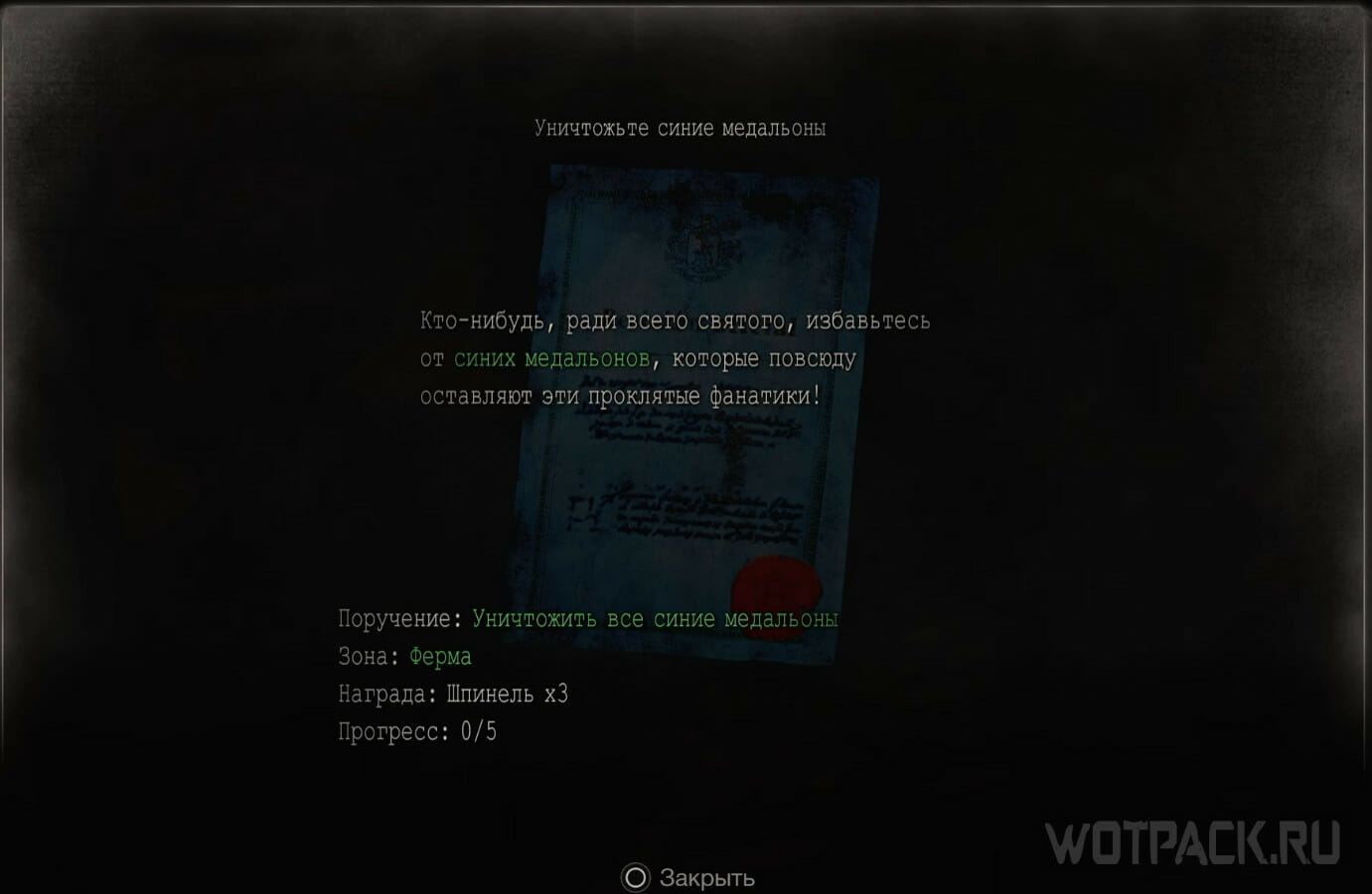 Перед тем как уничтожить синие медальоны в Resident Evil 4 Remake, необходимо взять синюю записку (побочное задание) торговца в одной из глав, подобрав ее неподалеку от магазина. В «документе» будет просьба об уничтожении синих медальонов, которые оставляют фанатики, указание зоны, награда и прогресс. Задания с уничтожением медальонов есть в ряде глав: