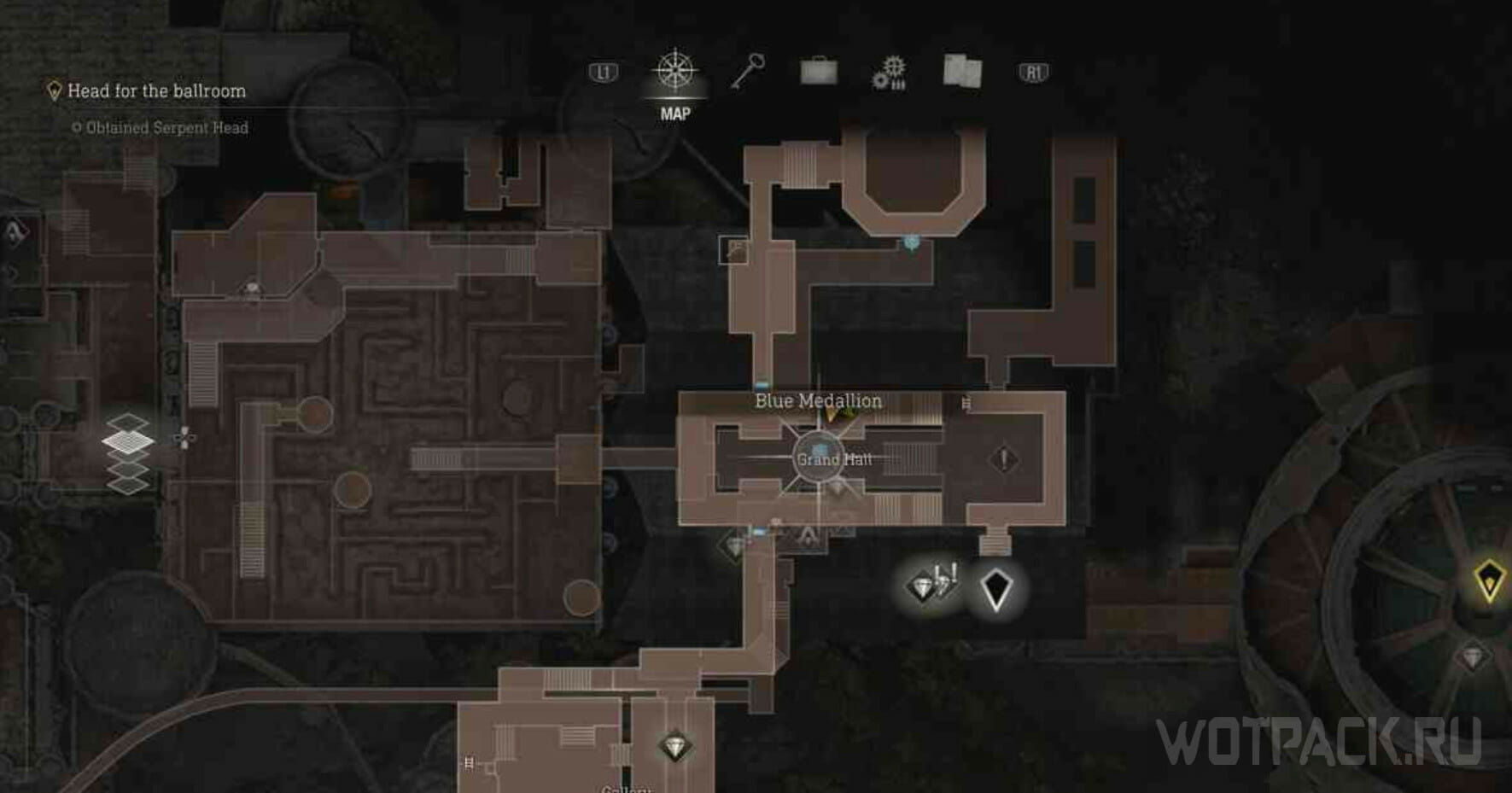 Последний медальон расположен в Галерее. Пройдите в последнюю комнату наверху, чтобы попасть в эту зону локации. В конце дорожки загляните за последнюю колонну на правой стороне и найдете синий предмет, который останется разбить.