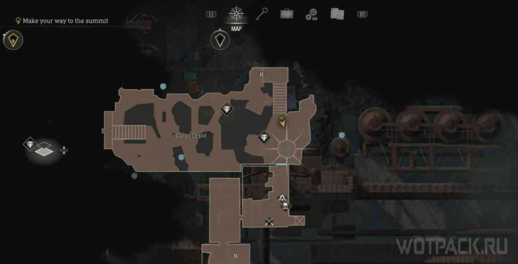 Пройдите на юго-запад локации, чтобы зайти в следующую зону Грузового депо, спустившись по лестнице. Держитесь левой стороны и найдете красный контейнер, а на нем и атрибут сектантов.