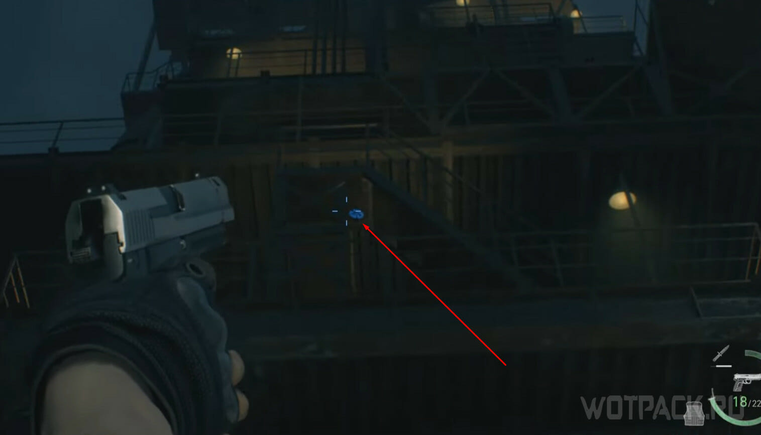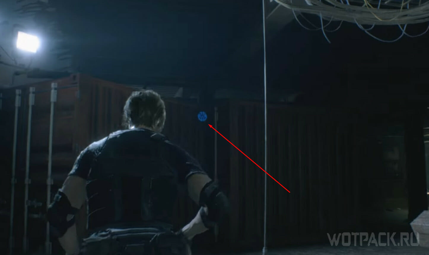 От красного контейнера пройдите направо и дойдите до металлической цистерны. Рядом с ней висит еще один объект для квеста.